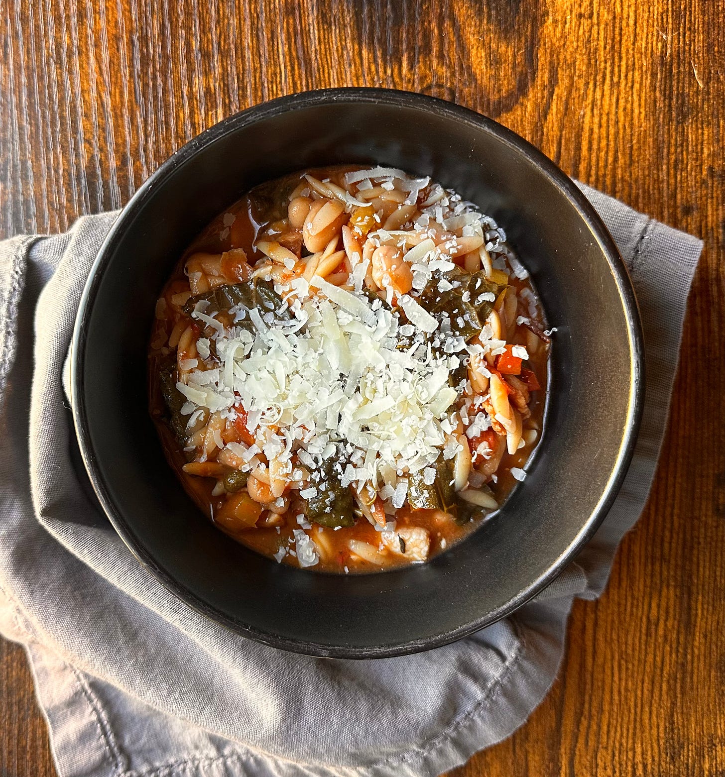 If you’re ever feeling unsteady in the kitchen or want to flex your creativity just because, soup is the place to start. You can make it real brothy or scale the liquid back and make a stew. You can start off with a stew and then add more liquid the next day to stretch it. You can cook pasta or rice separately (my general recommendation) so that you can switch up your leftover game or maybe serve it with neither but add some garlicky breadcrumbs when serving or make some giant croutons and toast some cheese on top of it. Maybe you’ll toss in potatoes and then some cheesy croutons! Soup is for creatives— that’s a hill I’ll die on.